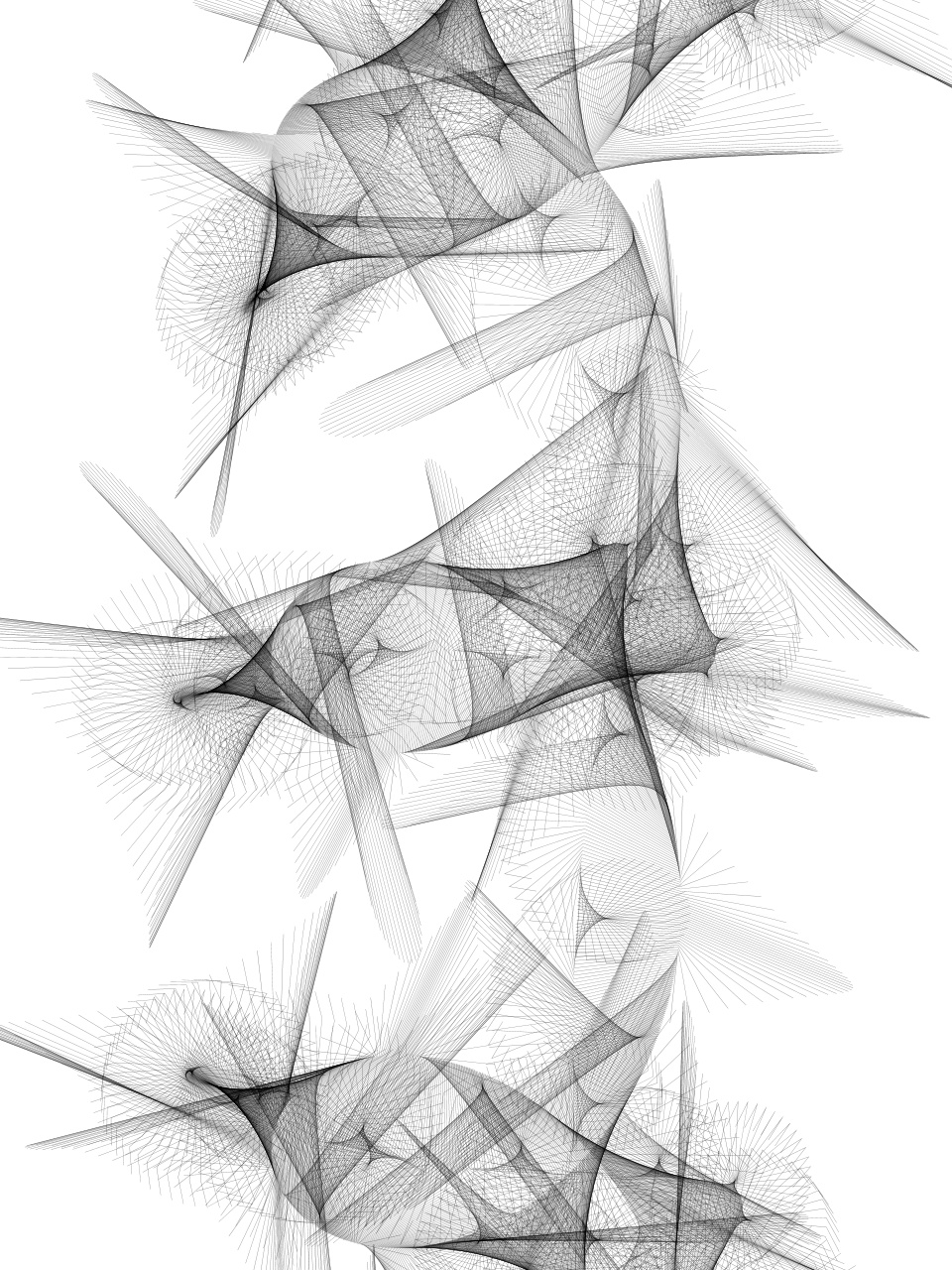 Generator of virtually infinite drawings based on epicyclic motions and the vertical slip of their radii traces.